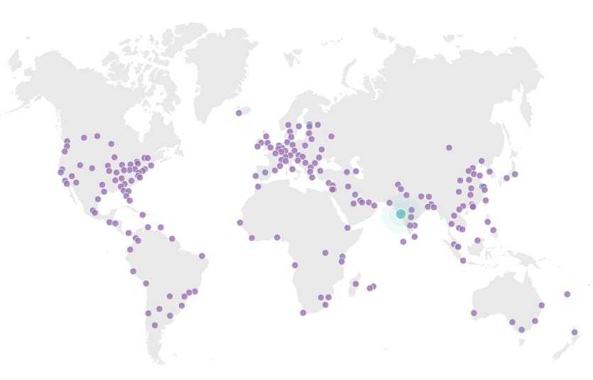 - Edge execution - Cloudflare workers execute on their edge network, between your servers and your users' devices. It is like running Chrome, except instead of running it on your laptop or mobile device, it runs on Cloudflare's edge network. The Cloudflare network spans over 200 cities in more than 100 countries. Their 25 Tpbs network capacity is 15x bigger than the largest DDoS attack ever recorded. The Cloudflare global footprint puts these serverless functions within 100ms of 99% of the developed world (and 95% of the entire world’s population).